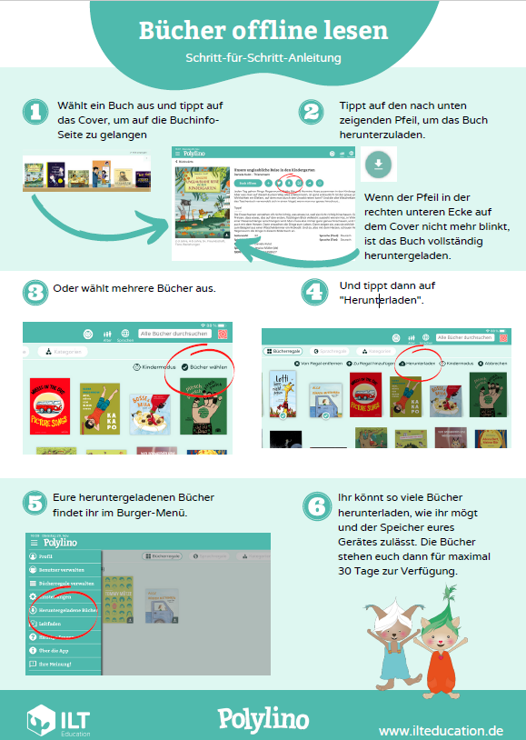 Du hast allerdings die Möglichkeit - wenn du mit den Kindern zum Beispiel einmal draußen lesen möchtest - einzelne Bücher für den Offline-Modus herunterzuladen. Diese stehen euch dann auch ohne Internetverbindung bis zu 30 Tage zur Verfügung.